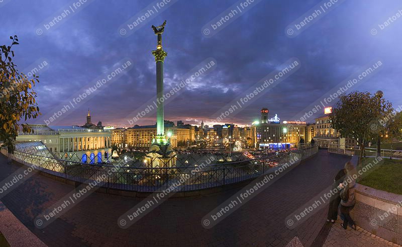 Ночной Киев, Украина. Площадь Независимости. Майдан Незалежности