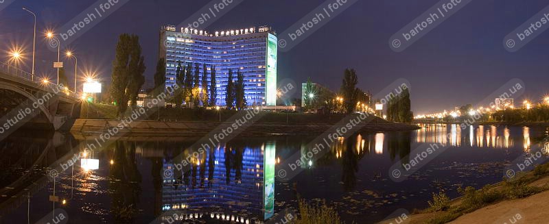 Ночной Киев, Украина. Гостиница Славутич и русановский канал