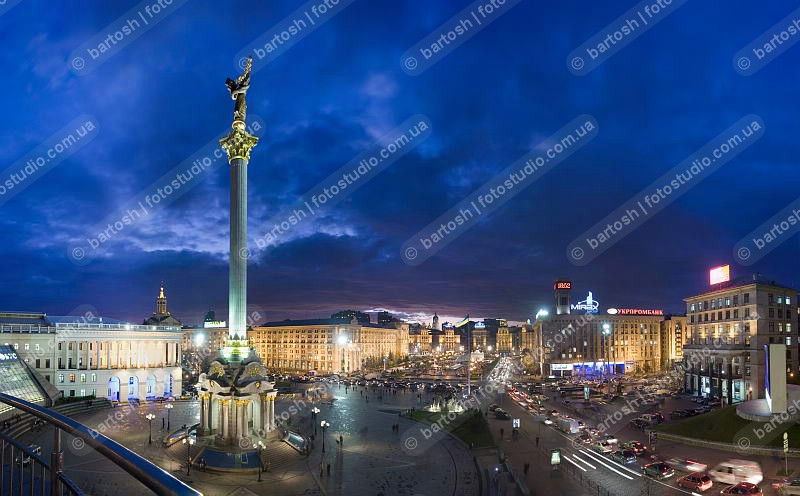 Ночной Киев, Украина. Площадь Независимости. Майдан Незалежности