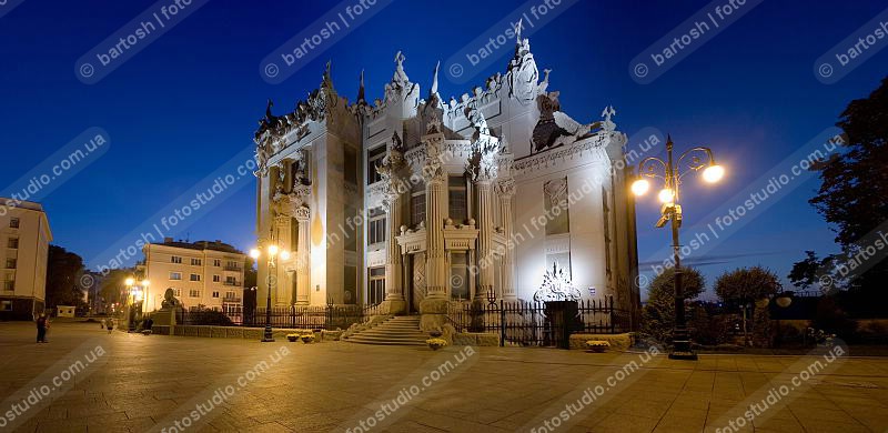 Ночной Киев, Украина. Банковая улица, 10. Дом с химерами (архитектор Владислав Городецкий, 1902 - 1903)