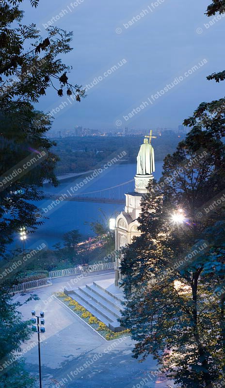 Ночной Киев, Украина. Памятник Владимиру Великому - Крестителю Киевской Руси