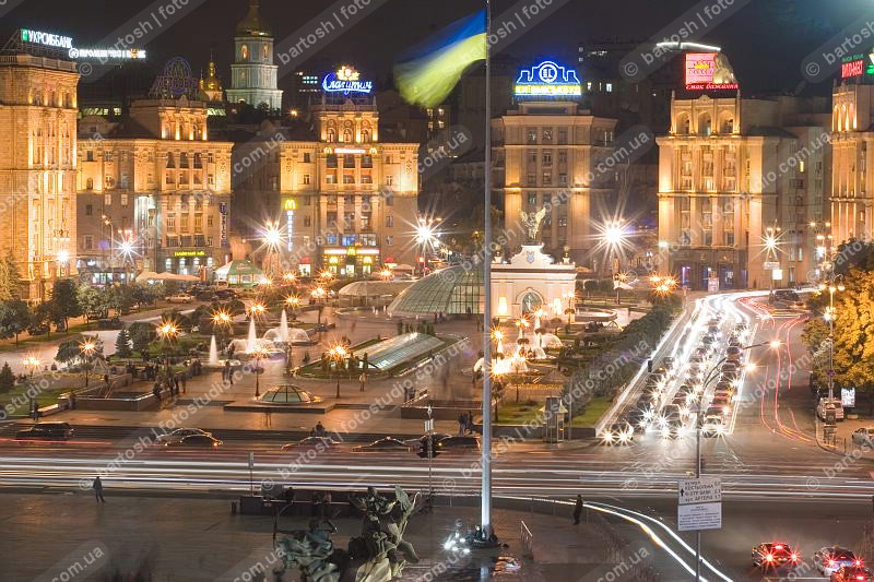 Ночной Киев, Украина. Плоащадь Независимости. Майдан Незалежности