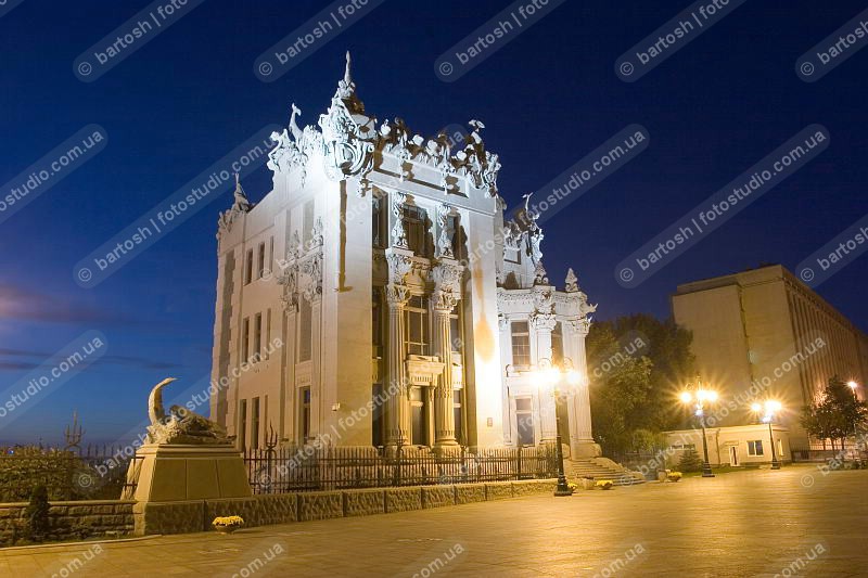 Ночной Киев, Украина. Дом архитектора Владислава Городецкого (1902 - 1903). Дом с химерами