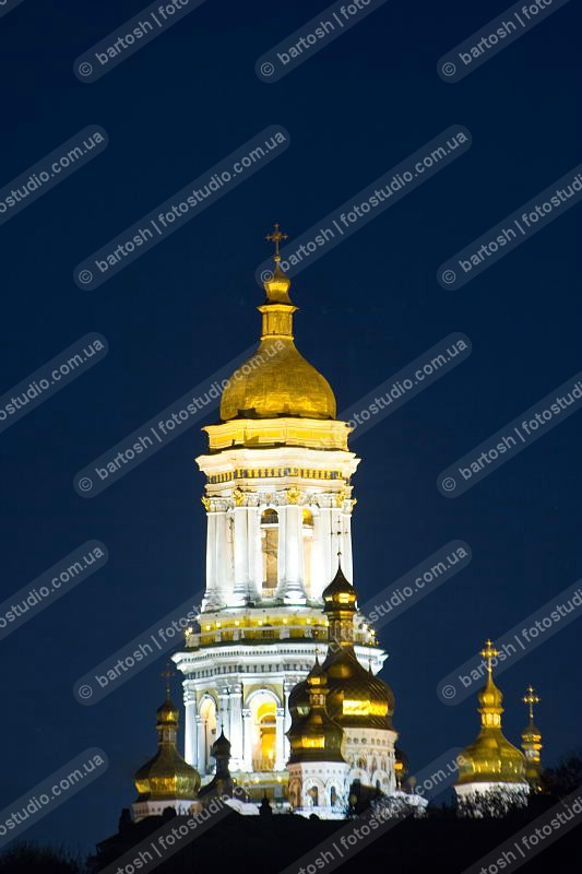 Ночной Киев, Украина. Киево-печерская лавра. Колокольня