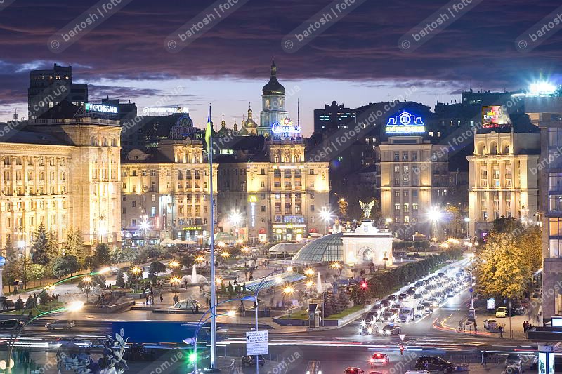 Ночной Киев, Украина. Майдан Незалежности. Площадь Независимости