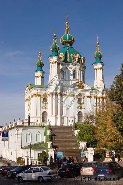 Киев, Украина. Андреевская церковь сооружена по проекту Бартоломео Растрелли в 1744-1767 годах в стиле барокко по заказу императрицы Елизаветы Петровны.
