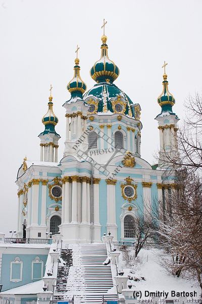 Киев, Украина. Андреевская церковь сооружена по проекту Бартоломео Растрелли в 1744-1767 годах в стиле барокко по заказу императрицы Елизаветы Петровны