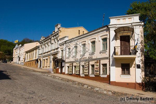 киев, украина, город, столица, улица, достопримечательность, театр, дом, андреевский, спуск, брусчатка