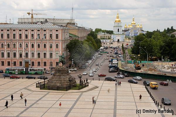 Киев. Вид с колокольни Софиевского (Софийского) собора на Софиевскую площадь и Собор Михаила Архангела (Свято-Михайловский)
