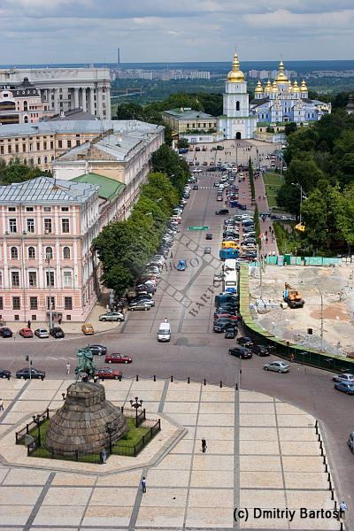 Киев, Украина. Вид с колокольни Софиевского собора на Софиевскую площадь и Свято-Михайловский собор