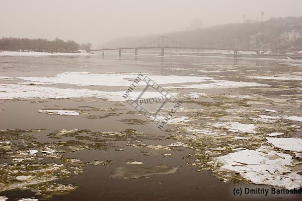 подол, киев, украина, днепр, набережная, город, улица, столица, река, туман, лед, ледоход, таяние, снег, весна, зима