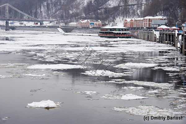 подол, киев, украина, днепр, набережная, город, улица, столица, река, лед, весна, зима