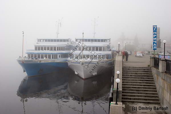 подол, киев, украина, днепр, набережная, город, улица, столица, река, туман, причал, корабль