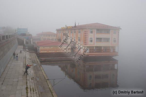 подол, киев, украина, днепр, набережная, город, улица, столица, река, туман, рыбак
