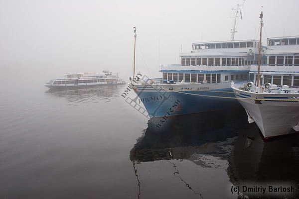 подол, киев, украина, днепр, набережная, город, улица, столица, река, туман, причал, корабль