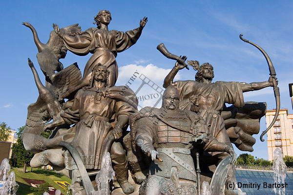 Киев, Украина. Скульптурная композиция Кий, Щек, Хорив и их сестра Лыбедь на площади Независимости