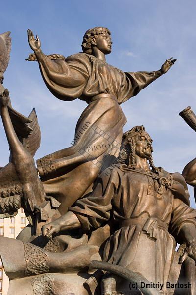 Киев, Украина. Скульптурная композиция Кий, Щек, Хорив и их сестра Лыбедь на площади Независимости
