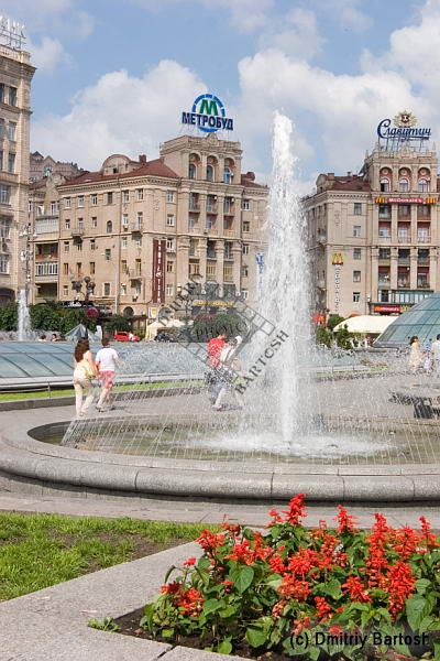 Киев, Украина. Крещатик. Фонтаны на площади Независимости