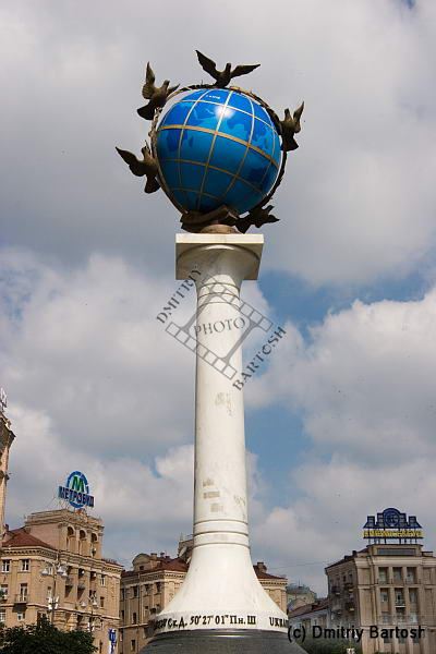 Киев, Украина. Крещатик. Скульпутра с отметками расстояний до различных городов мира