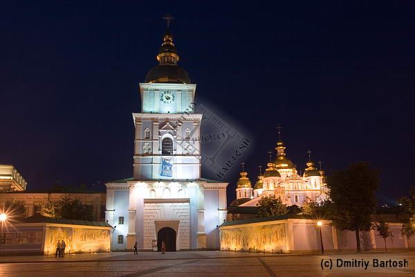 Ночной Киев, Украина. Златоверхий Михайловский собор. Колокольня