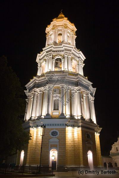 Ночной Киев, Украина. Киево-Печерская Лавра. Колокольня