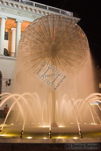 Ночной Киев, Украина. Фонтаны на плоащди Независимости