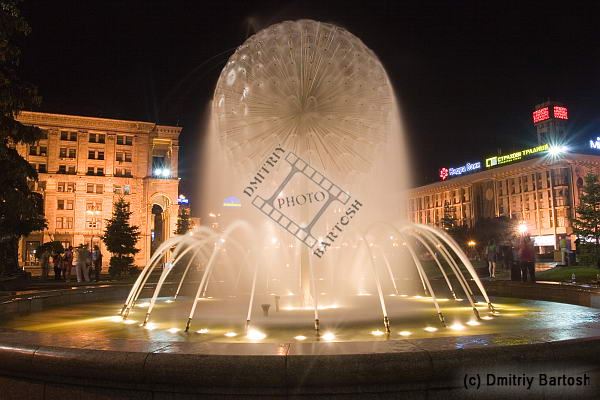 Ночной Киев, Украина. Фонтаны на плоащди Независимости
