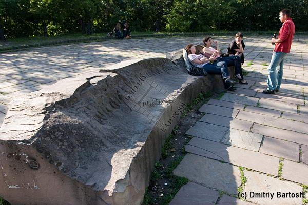 Киев, Украина. Десятинная площадь. Надпись "откуда есть пошла земля русская"