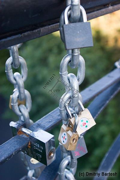 Киев, Украина. Замки Любви на мостике влюбленных