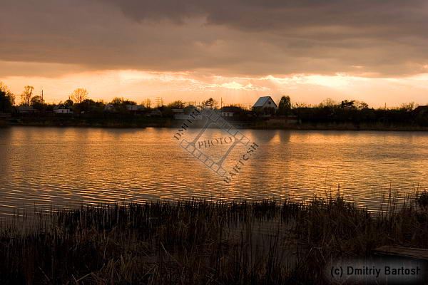 Киев. Закат солнца на озере Радунка. Жилой массив Радужный.
