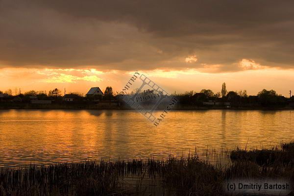 Киев. Закат солнца на озере Радунка. Жилой массив Радужный.