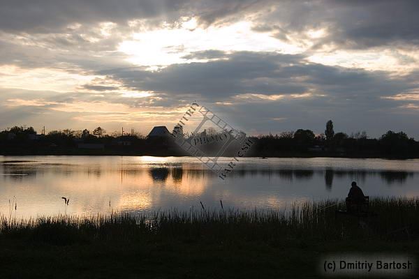 Киев, Украина. Закат на озере Радунка. Жилмассив Радужный