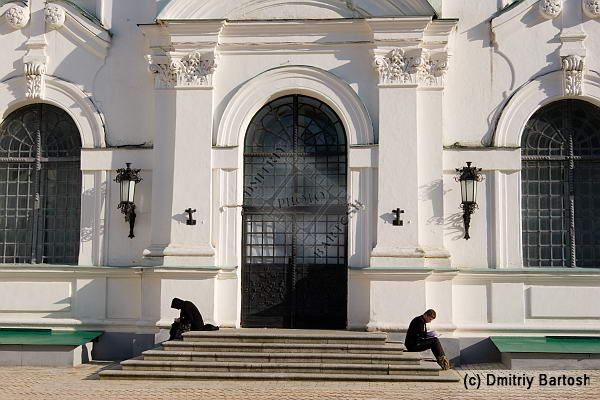 Киев, Украина. Киево-Печерская Лавра. Люди на ступеньках