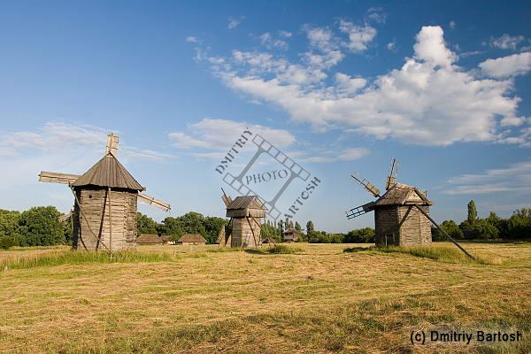 Киев, Украина. Музей народной архитектуры и быта Украины в селе Пирогово. Полесье. Ветряки конца 19-нач 20 ст из Сумской, Черниговской, Ровенской областей