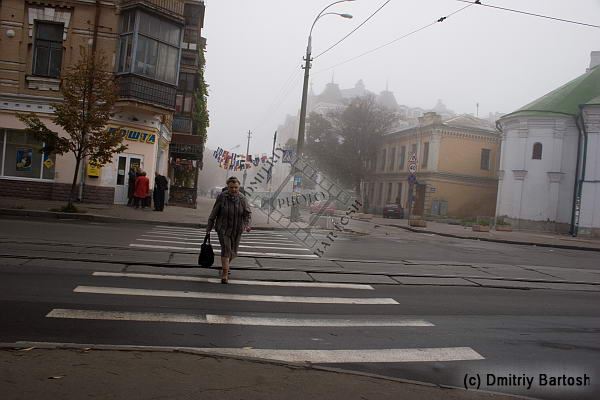 киев, украина, подол, город, улица, переход, женщина
