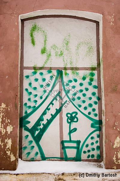 киев, украина, подол, город, улица, окно, графити, рисунок