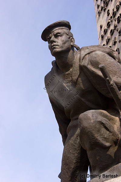 Киев. Набережная реки Днепр. Подол. Памятник работникам речфлота и суднам, погибшим во время Второй Мировой войны